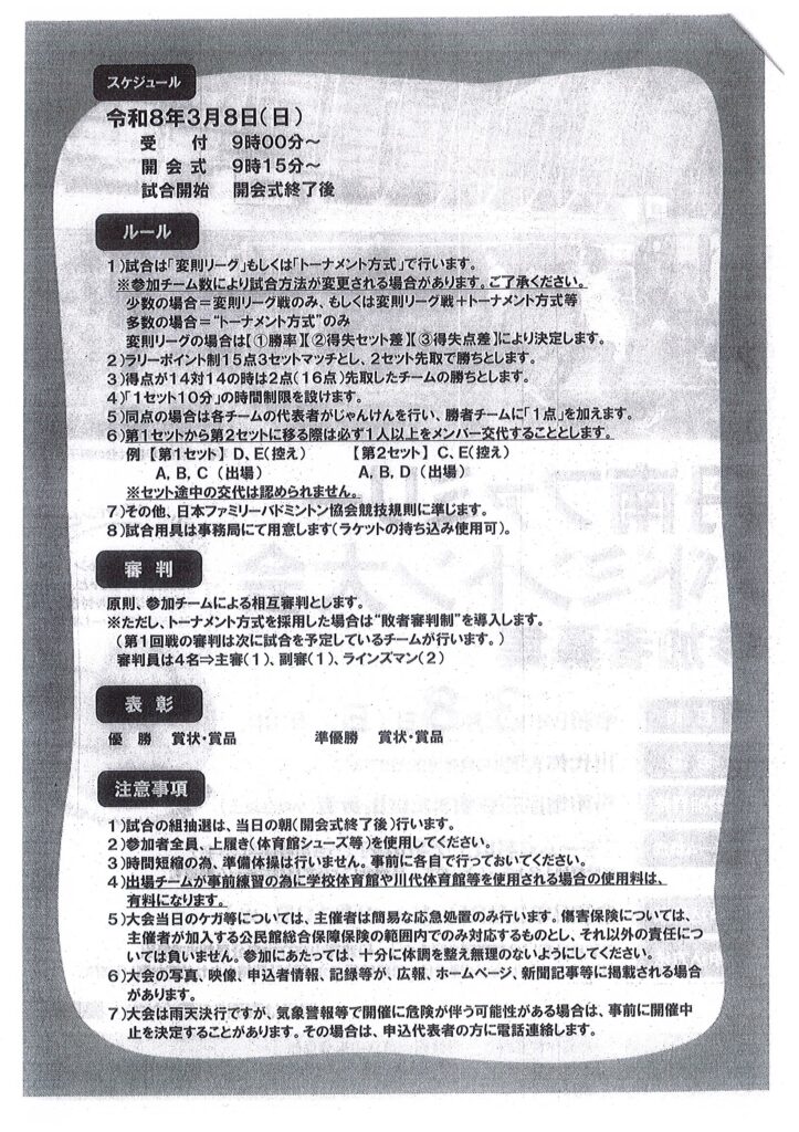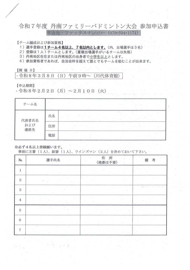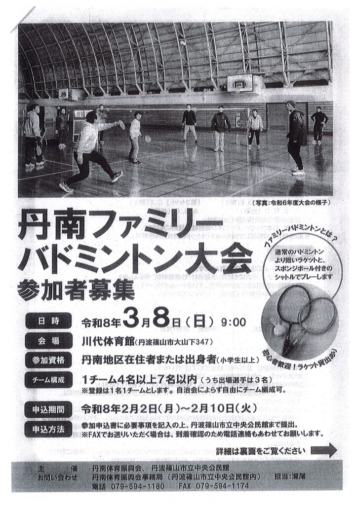 ・丹南ファミリーバドミントン大会の開催について