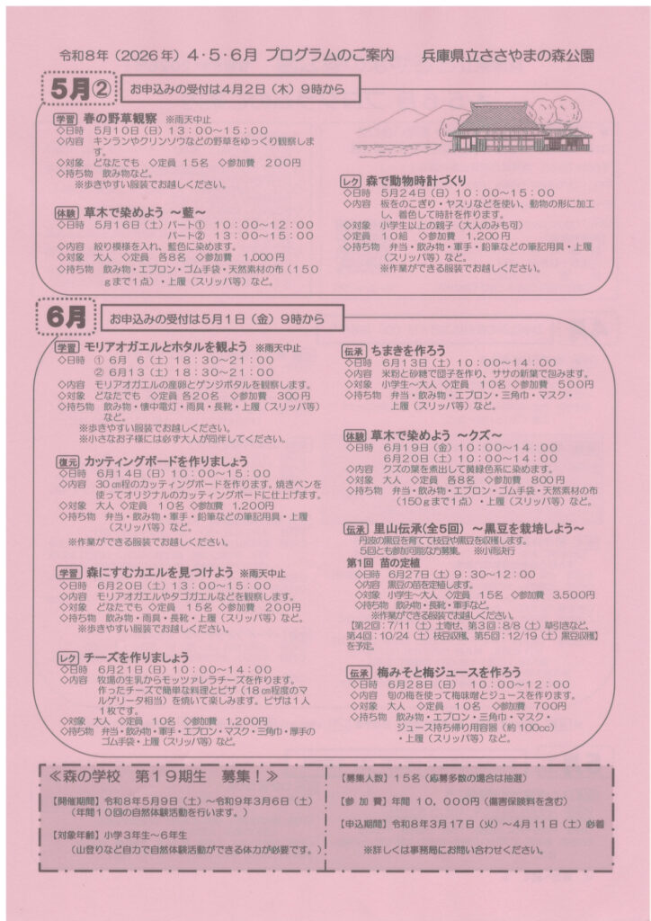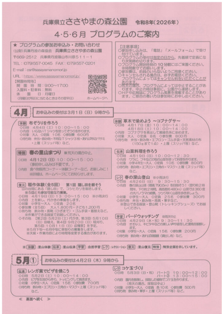 ・ささやまの森公園4~6月プログラム