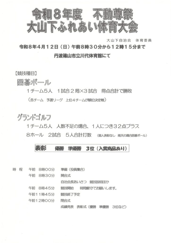 - 4月12日 不動尊祭・大山下親睦体育大会
