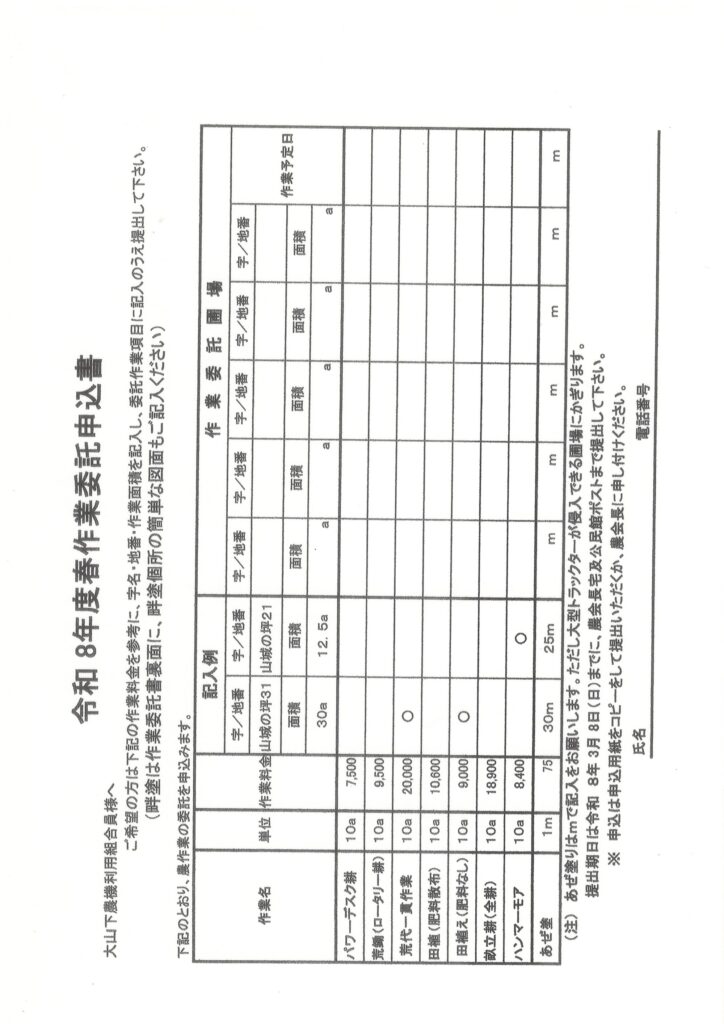・令和8年度春作業委託申込書